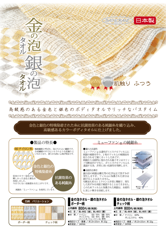 金の泡・銀の泡ボディタオル